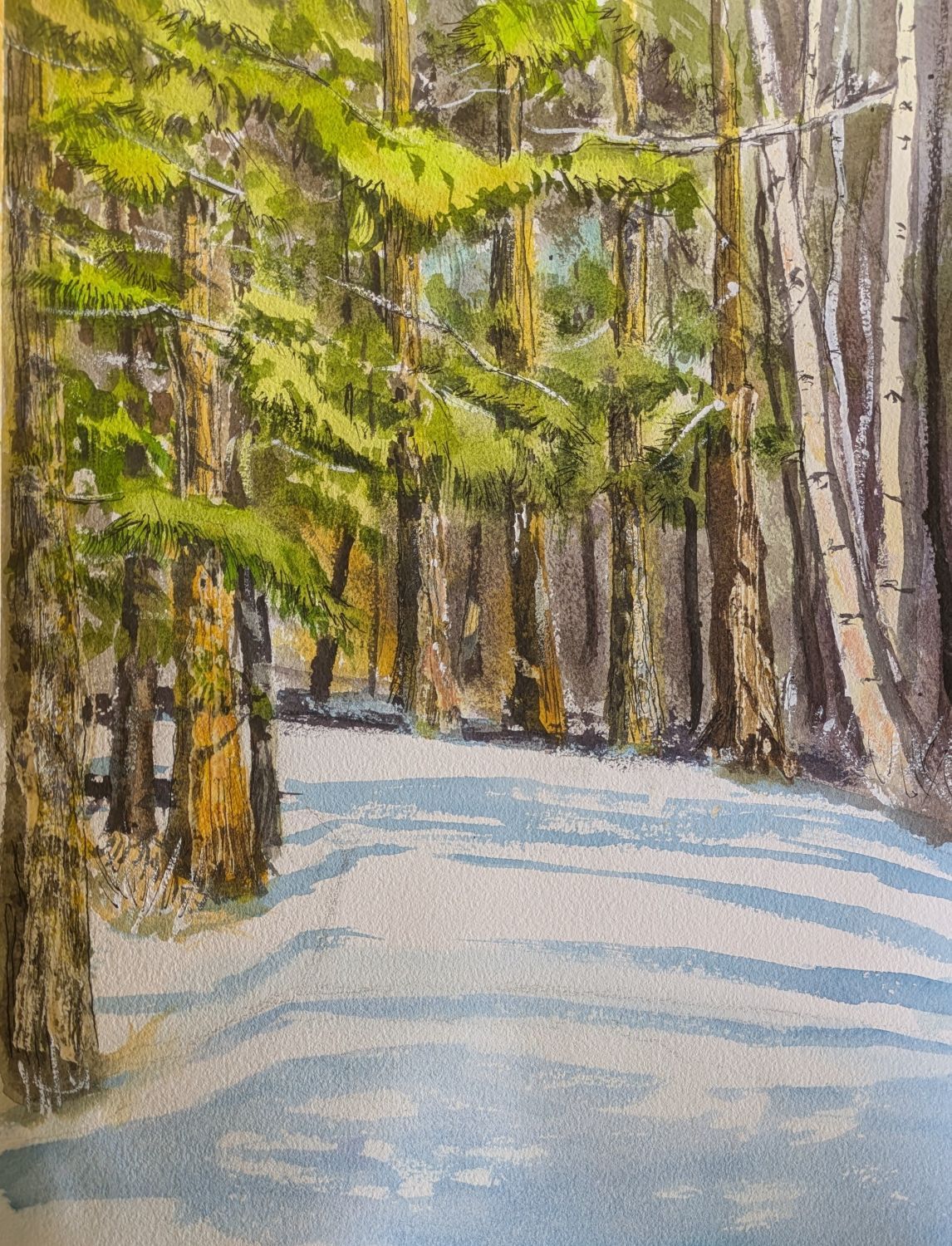 Art Image Artwork mediaWatercolourArtwork DescriptionWinter time in trails.Artwork size 12x16Artwork price 250Artist Last NameMansouri